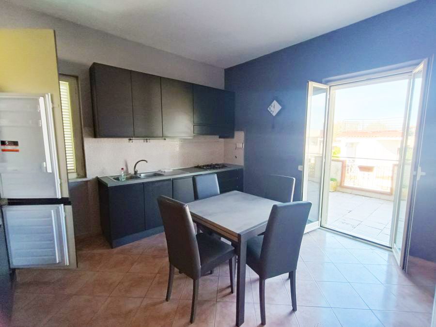 L'immobile è di circa 80 mq, è in ottime condizioni ed è composto da soggiorno, cucina abitabile, due camere da letto, disimpegno, bagno con cabina doccia e ampio terrazzo che copre due lati dell'immobile e a cui si accede tramite la cucina e le due camere da letto.
